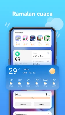 Dengan **App vault**, anda dapat menikmati capaian pintas yang pantas ke aplikasi kegemaran atau yang paling sering anda gunakan, menghilangkan keperluan untuk menatal skrin yang tidak berkesudahan. Aplikasi penting anda kini boleh dicapai dengan segera. Selain itu, kekal sentiasa dimaklumkan tentang keadaan cuaca semasa dan ramalan untuk beberapa hari akan datang, membantu anda merancang aktiviti dan perjalanan anda dengan yakin. Dari suhu terkini hingga kemungkinan hujan, semua maklumat cuaca penting tersedia di hujung jari anda.