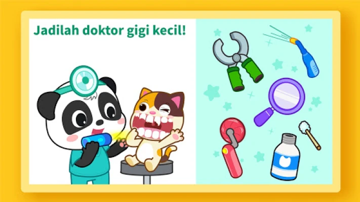 Di salun gigi yang sibuk ini, anda bukan sahaja akan merawat arnab, badak air, dan tikus, tetapi juga pelbagai haiwan comel lain seperti monyet dan kucing yang sabar menanti kepakaran anda. Setiap sesi rawatan menawarkan peluang unik untuk si kecil anda mengasah kemahiran motor halus, belajar tentang kebersihan gigi, dan membangunkan rasa empati. Alami pengalaman bertugas sebagai doktor gigi profesional dan pastikan setiap pesakit cilik pulang dengan senyuman lebar. Aplikasi ini dibawakan kepada anda oleh BabyBus, sebuah jenama yang didedikasikan untuk mencetuskan kreativiti dan imaginasi kanak-kanak, membantu mereka meneroka dunia melalui permainan yang mendidik dan menyeronokkan.