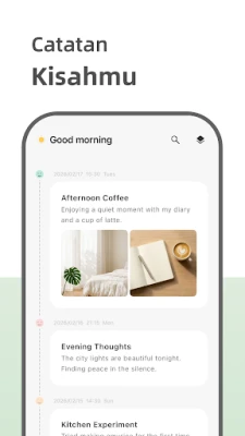 Bayangkan sebuah ruang digital yang tenang, dicipta khusus untuk aliran pemikiran dan pengalaman anda. Aplikasi jurnal ini direka untuk menjadi teman setia anda dalam mendokumentasikan setiap detik kehidupan, dari bisikan hati hingga petualangan terbesar. Dengan antaramuka yang intuitif dan mudah dikendalikan, anda dapat mencurahkan isi hati, mencatat peristiwa harian, atau menjejaki perubahan emosi dengan lancar. Kami mengutamakan privasi anda; oleh itu, setiap entri jurnal dilindungi dengan teknologi penyulitan termaju serta pilihan kunci cap jari atau corak, memastikan kenangan peribadi anda kekal selamat daripada tatapan yang tidak diingini.
