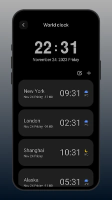 Selain fungsinya sebagai pengurus masa, aplikasi ini turut menawarkan jam flip skrin penuh yang estetik dengan animasi membalik halaman yang lancar dan reka bentuk minimalis. Alami keindahan masa berlalu di hadapan mata anda, sama ada dalam mod potret atau landskap, menjadikan setiap saat kelihatan lebih berharga. Tidak terhad kepada penjejakan masa semata-mata, ia juga membolehkan anda memantau keadaan cuaca terkini di lokasi semasa anda, serta memeriksa masa di mana-mana bandar di seluruh dunia dengan fungsi carian bandar yang mudah, memastikan anda sentiasa bersedia untuk hari mendatang.