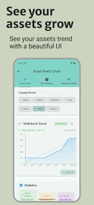 Dengan antara muka yang intuitif dan menarik, Simple Assets direka untuk menjadi sangat mudah digunakan, sesuai untuk pemula sekalipun. Urus pelbagai jenis aset seperti saham, hartanah, tunai, dan reksa dana dengan mudah melalui kategori yang boleh disesuaikan. Visualisasikan trend aset anda dengan carta dan graf yang jelas, serta analisis pergerakan jangka panjang atau pendek melalui paparan mengikut tempoh. Aplikasi ini juga menyokong pelbagai mata wang dengan format yang betul dan membolehkan input data secara pukal, menjadikan pengurusan kewangan anda lebih efisien dan tepat tanpa kekeluan daripada ciri-ciri yang tidak perlu.