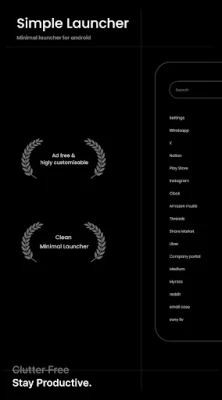 Peluncur Sederhana ialah pelancar minimalis inovatif untuk Android. Direka untuk membantu anda mengurangkan gangguan, kekal fokus, dan meningkatkan produktiviti harian anda dengan antara muka yang bersih dan intuitif. Alami kesederhanaan terbaik.