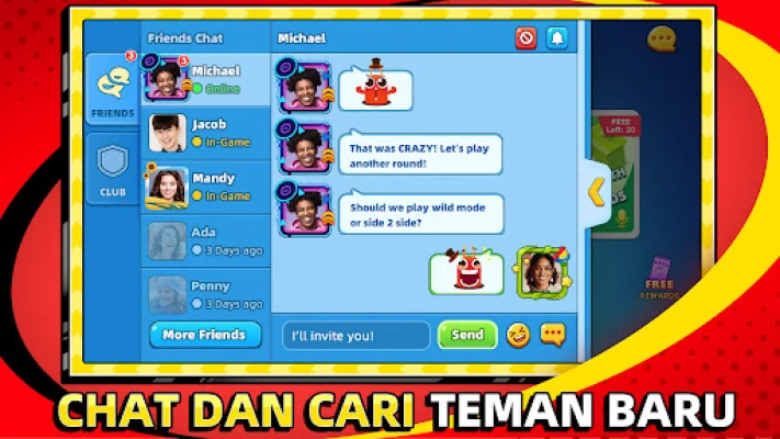 Tingkatkan permainan anda dengan ciri-ciri menarik yang direka untuk memikat hati anda. Sertai pasukan dengan teman dalam mod 2v2 yang unik, bekerjasama untuk mengurangkan kad di tangan anda dan meraih kemenangan bersama. Terokai siri kejohanan global dan acara istimewa yang menawarkan hadiah lumayan, di mana anda boleh mengasah kemahiran dan mendaki papan pendahulu untuk mempamerkan kehebatan anda. Selain itu, berinteraksi dengan komuniti dalam kelab, bertukar-tukar hadiah, dan pastikan anda menjerit "UNO!" sebelum orang lain untuk mengukuhkan status anda sebagai juara.